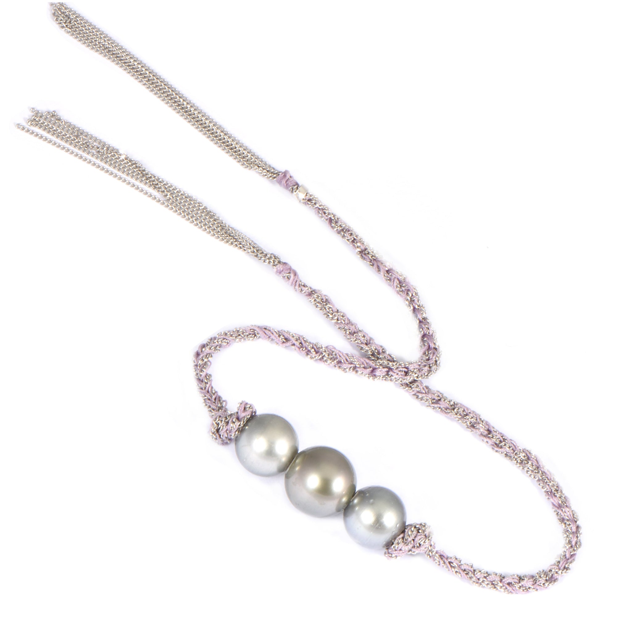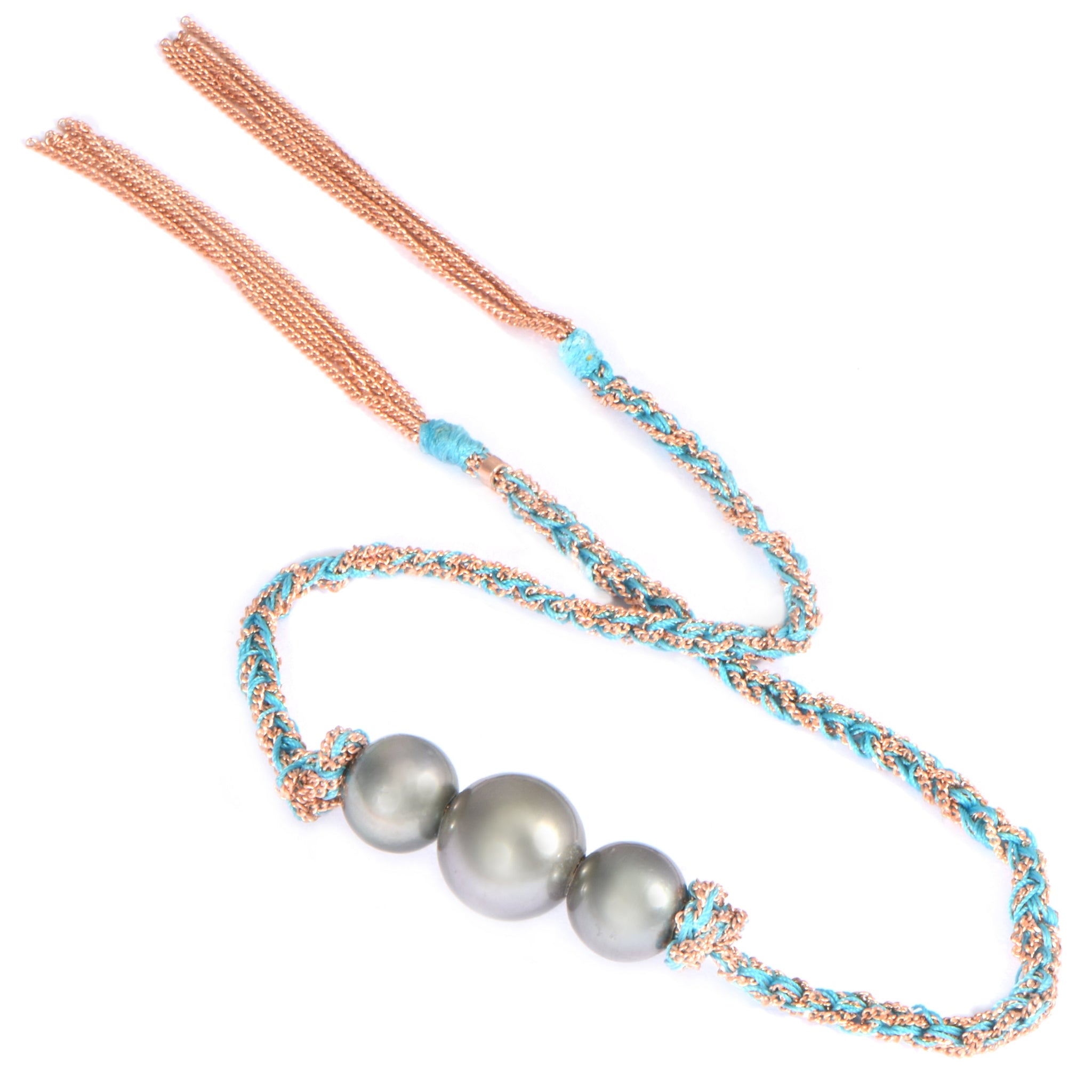 Triple Tahitian Pearl Braided Silk Chain Wrap Bracelet