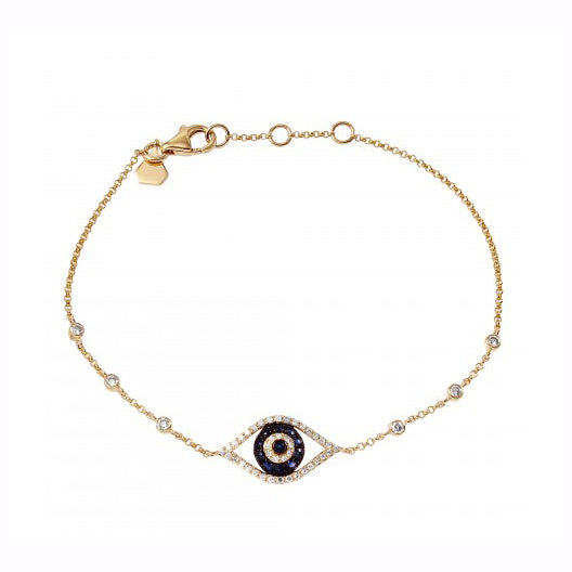 Blue Sapphire/Emerald Diamond Cut Out Evil Eye 6 Diamond Bezel Chain Bracelet