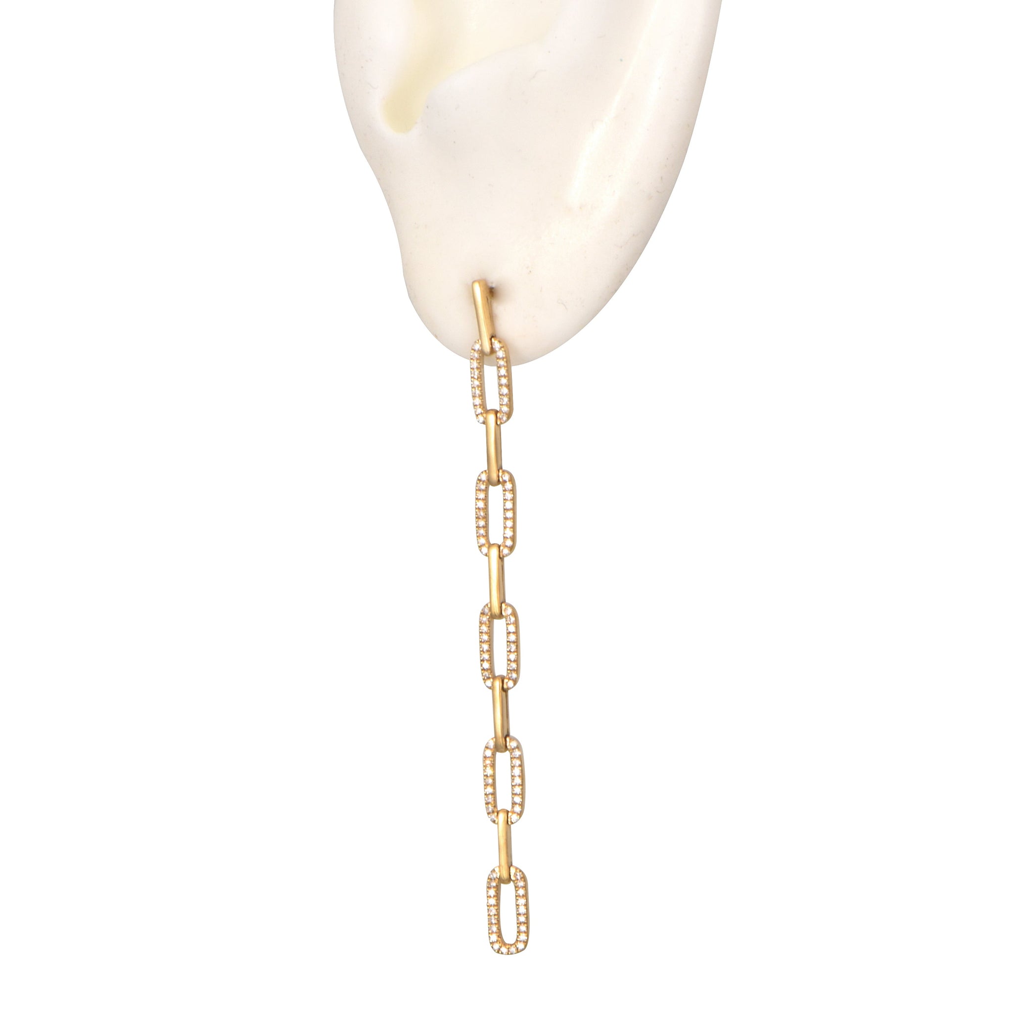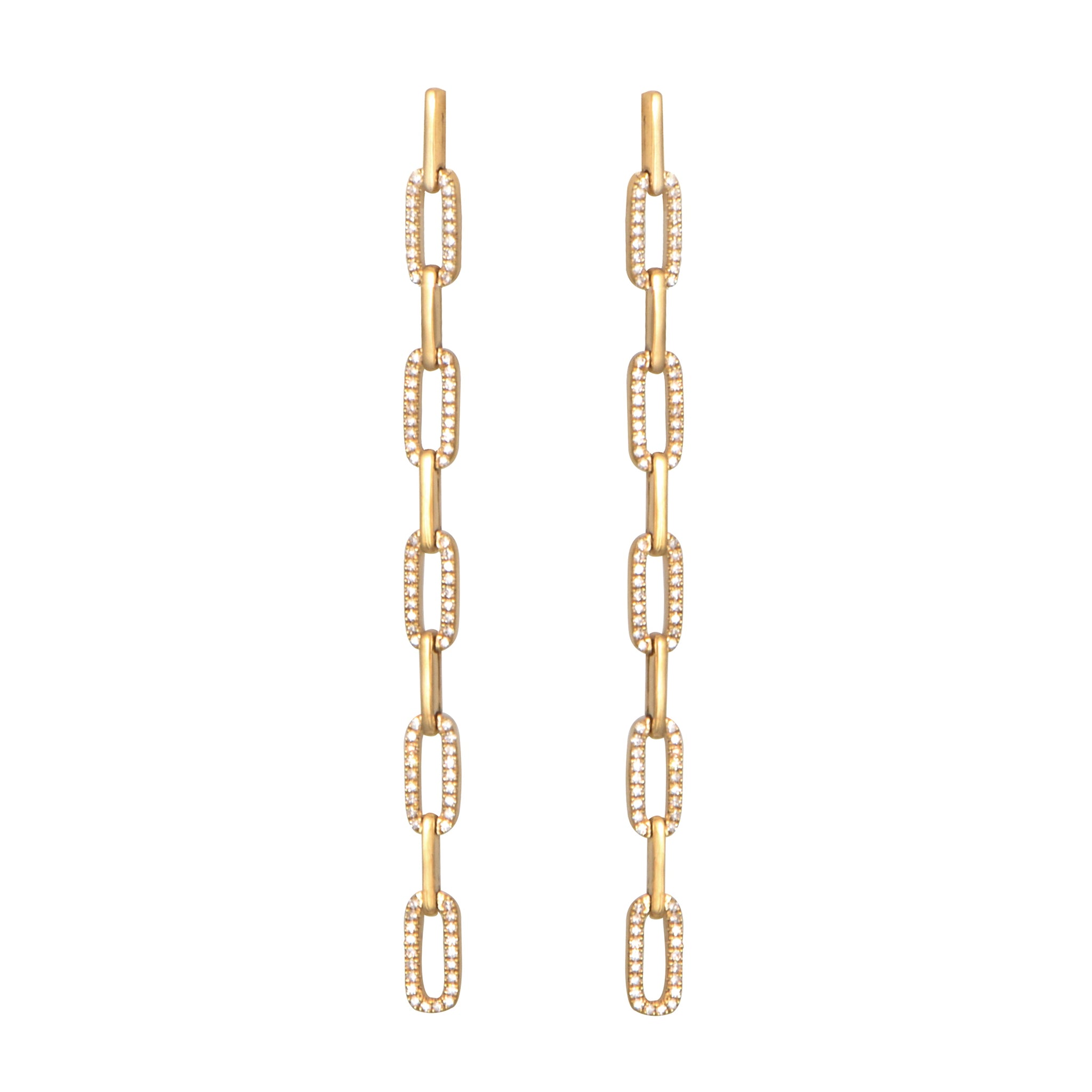 Alternating Diamond Paperclip Link Chain Drop Earrings