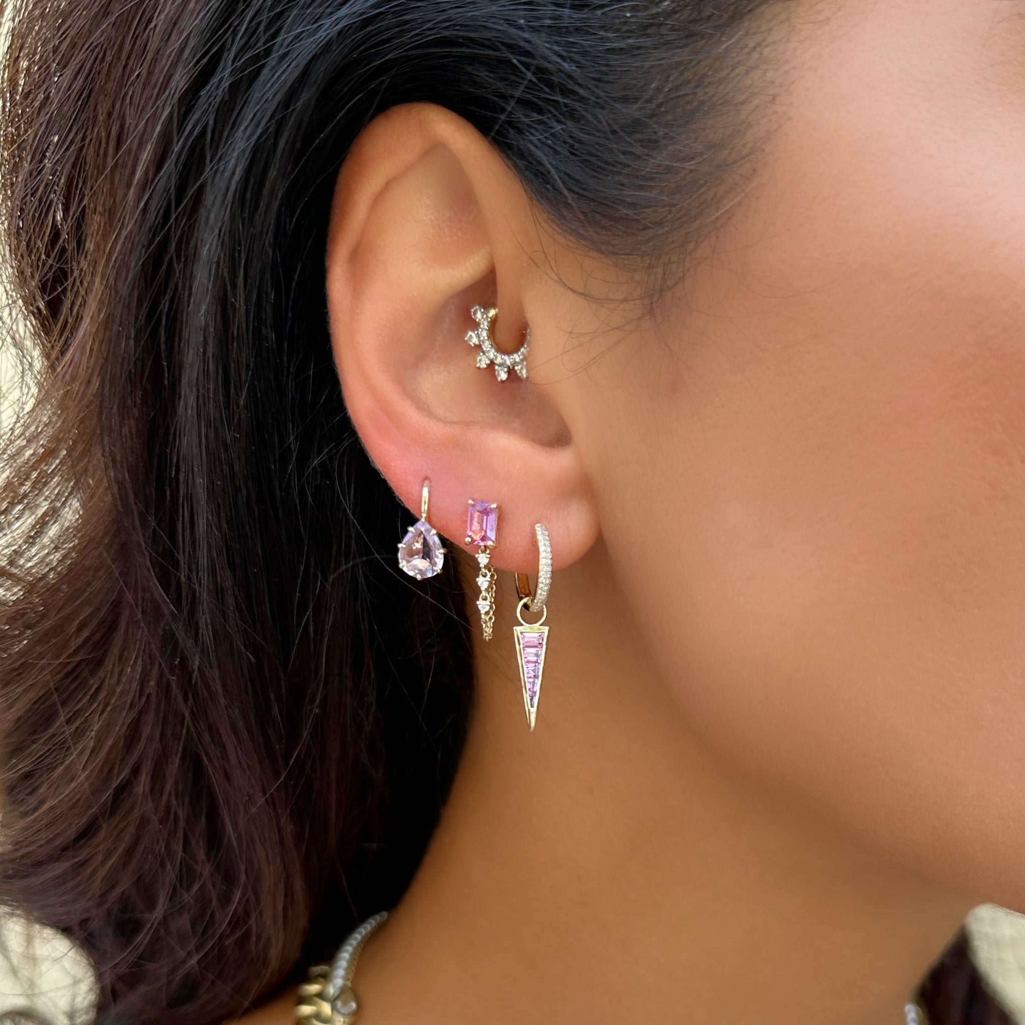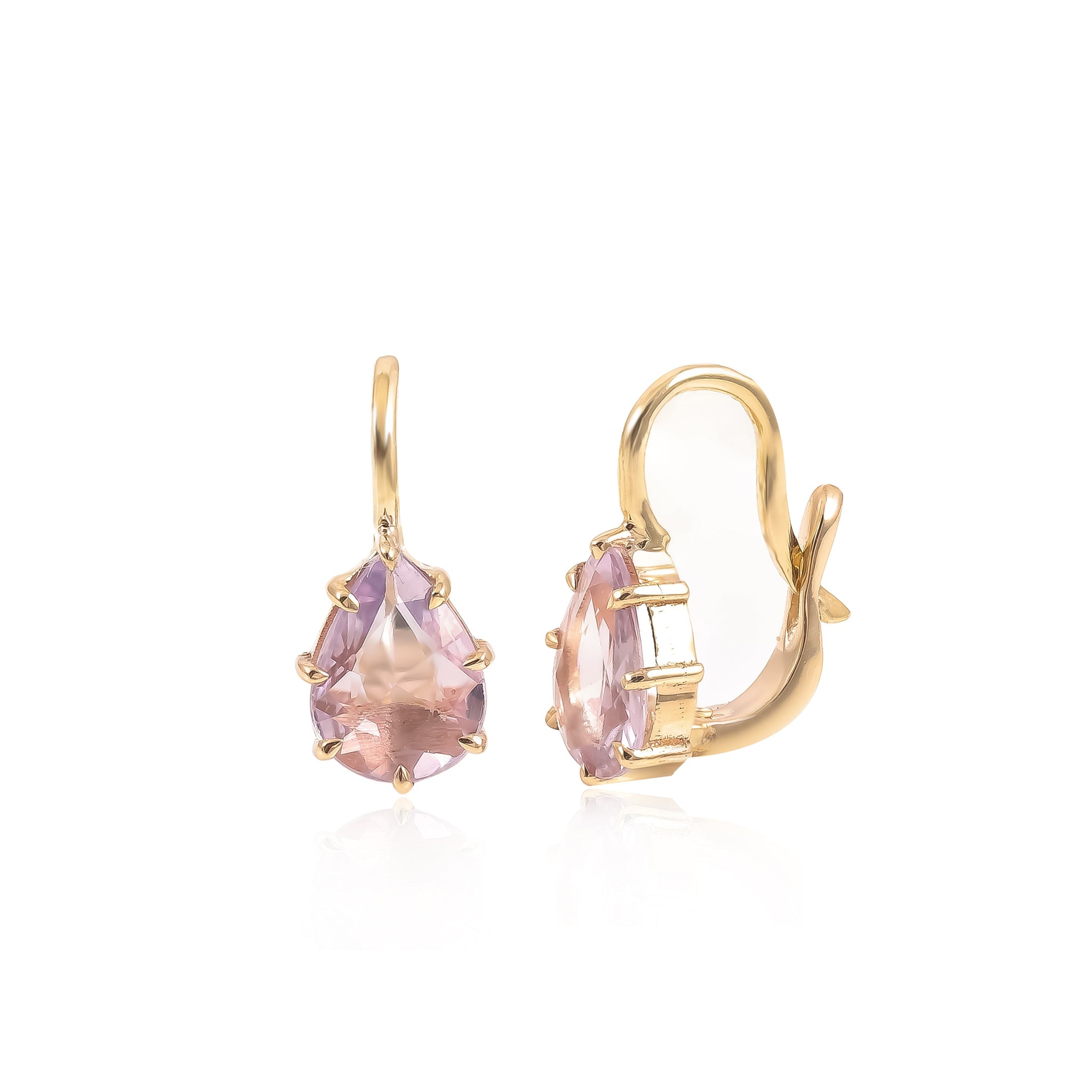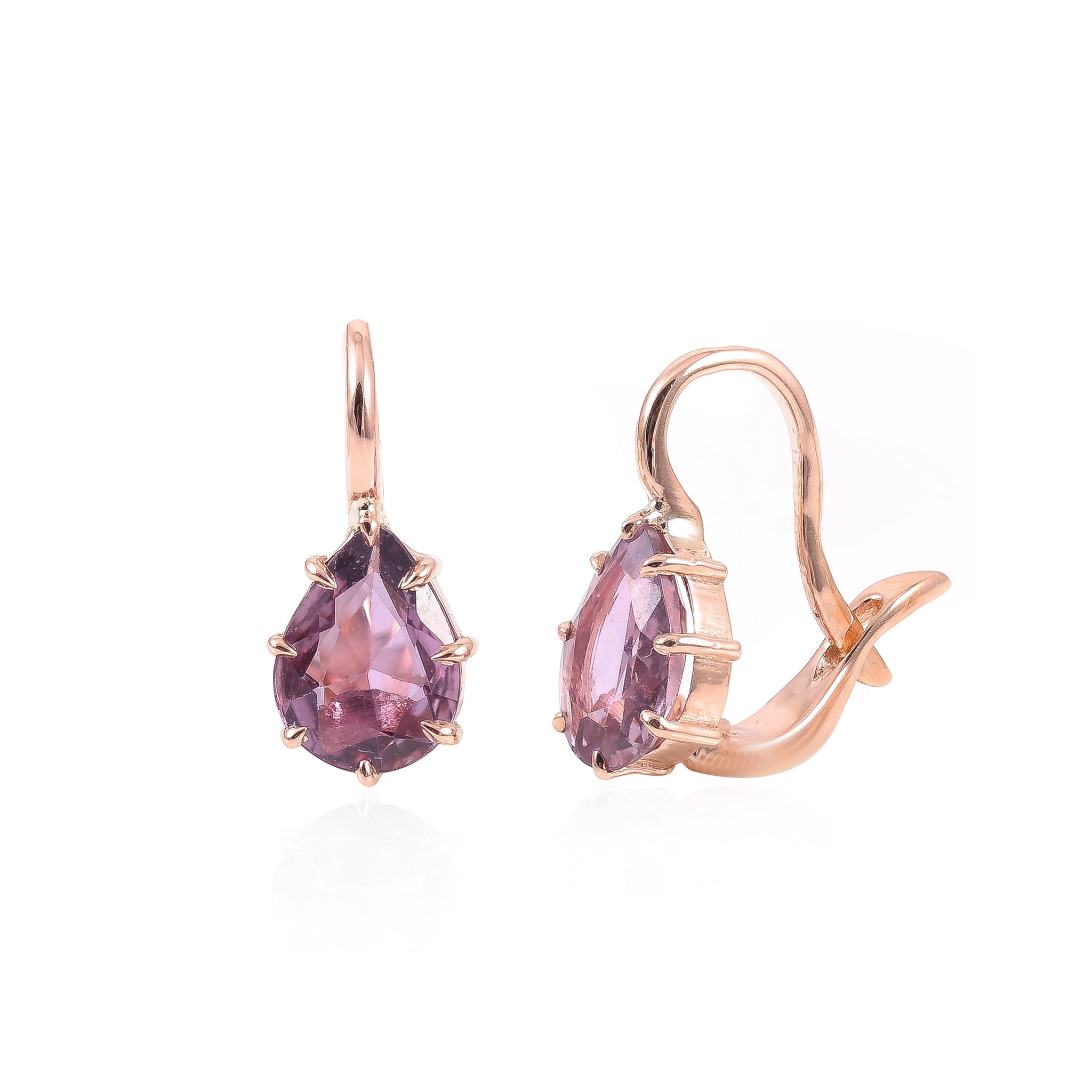Prong Set Tear Drop Pink Sapphire Drop Earrings