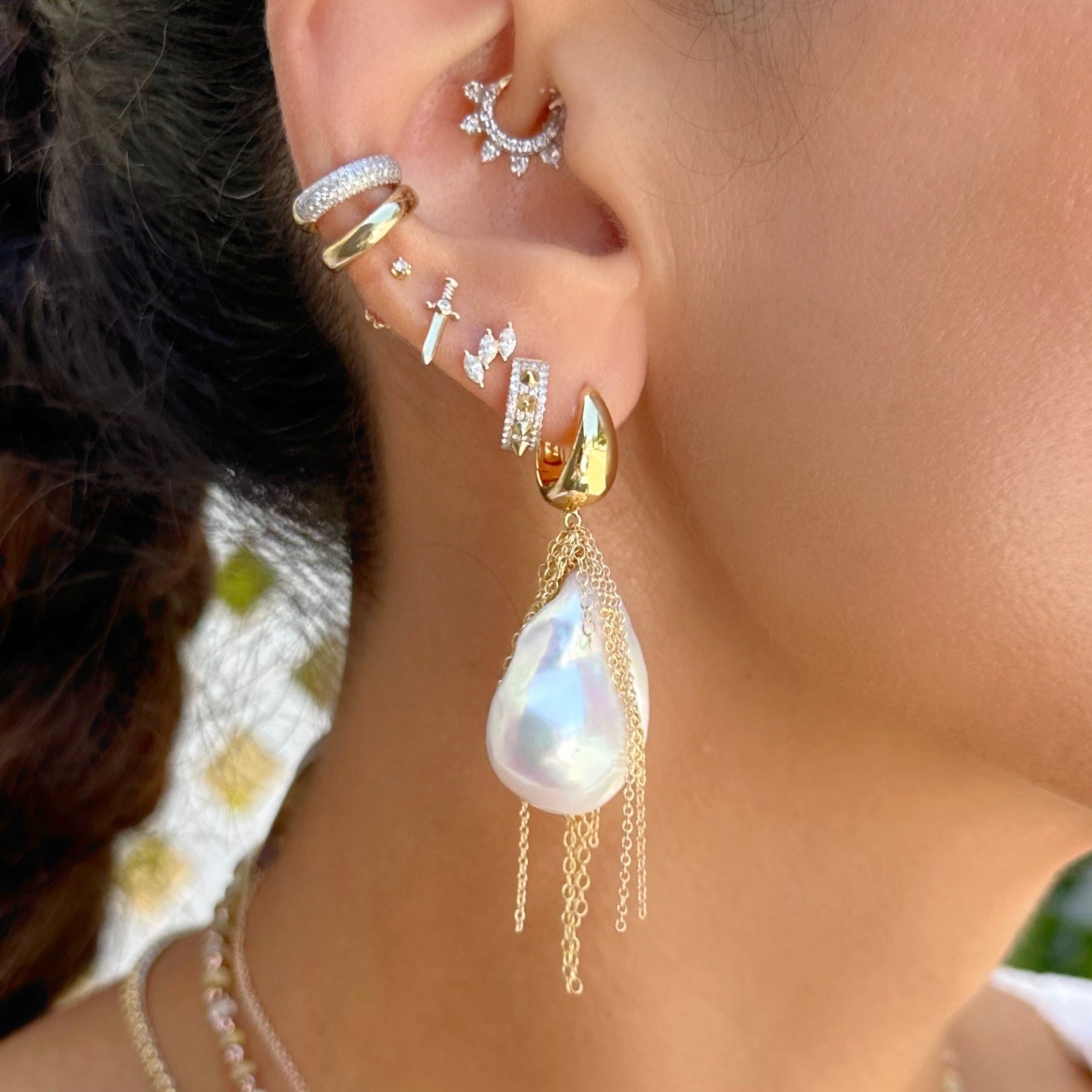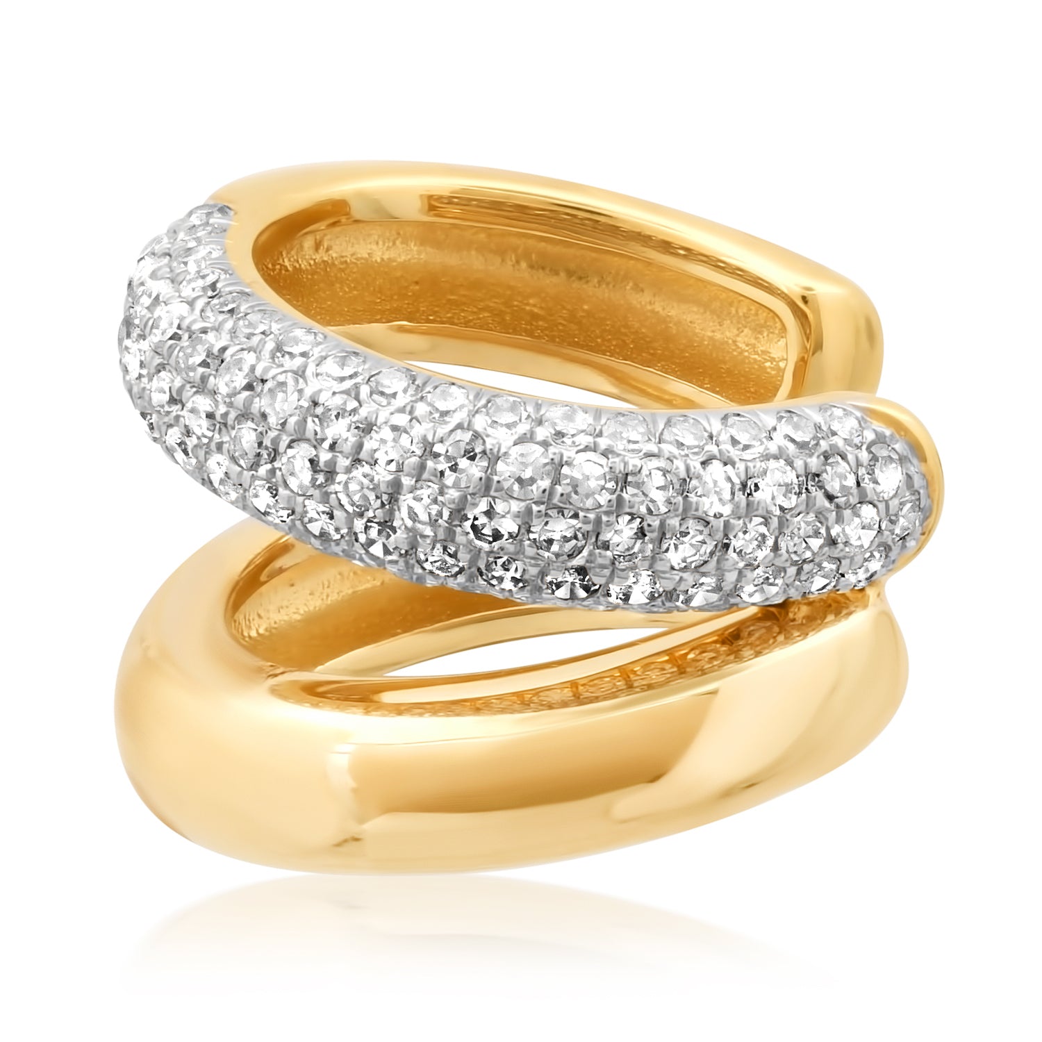 Half Pave Diamond Half Gold Rounded Double Row Split Ear Cuff