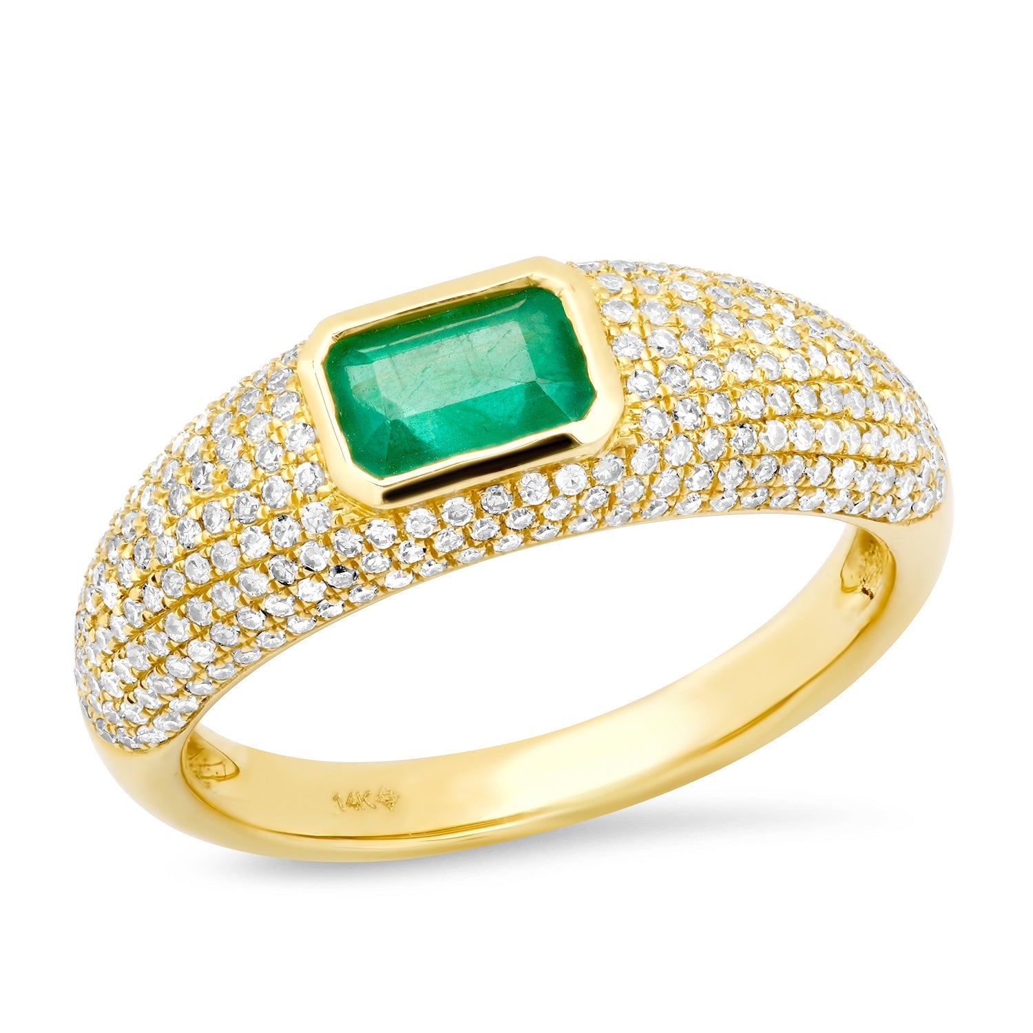 East West Stone Bezel Pave Diamond Dome Gypsy Ring
