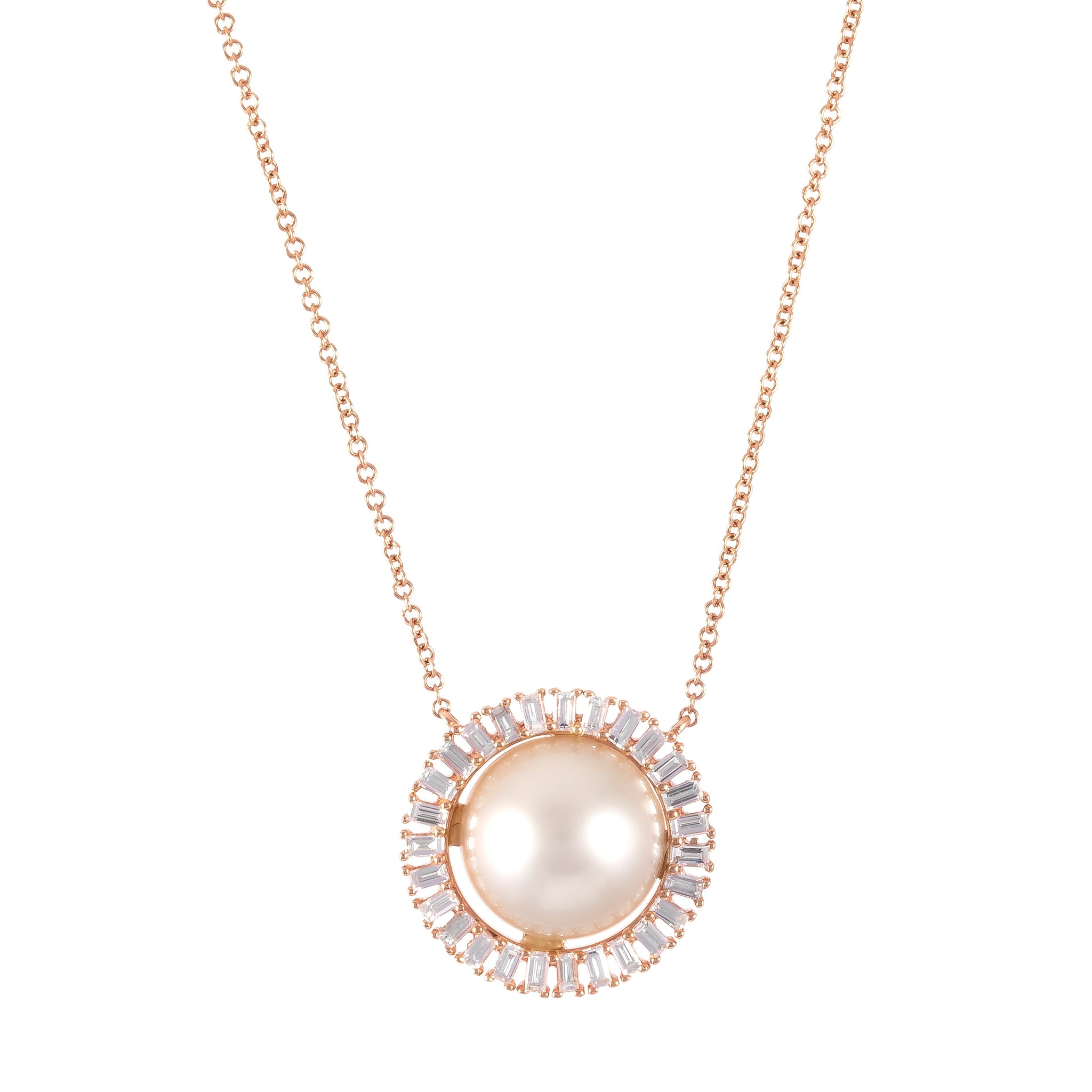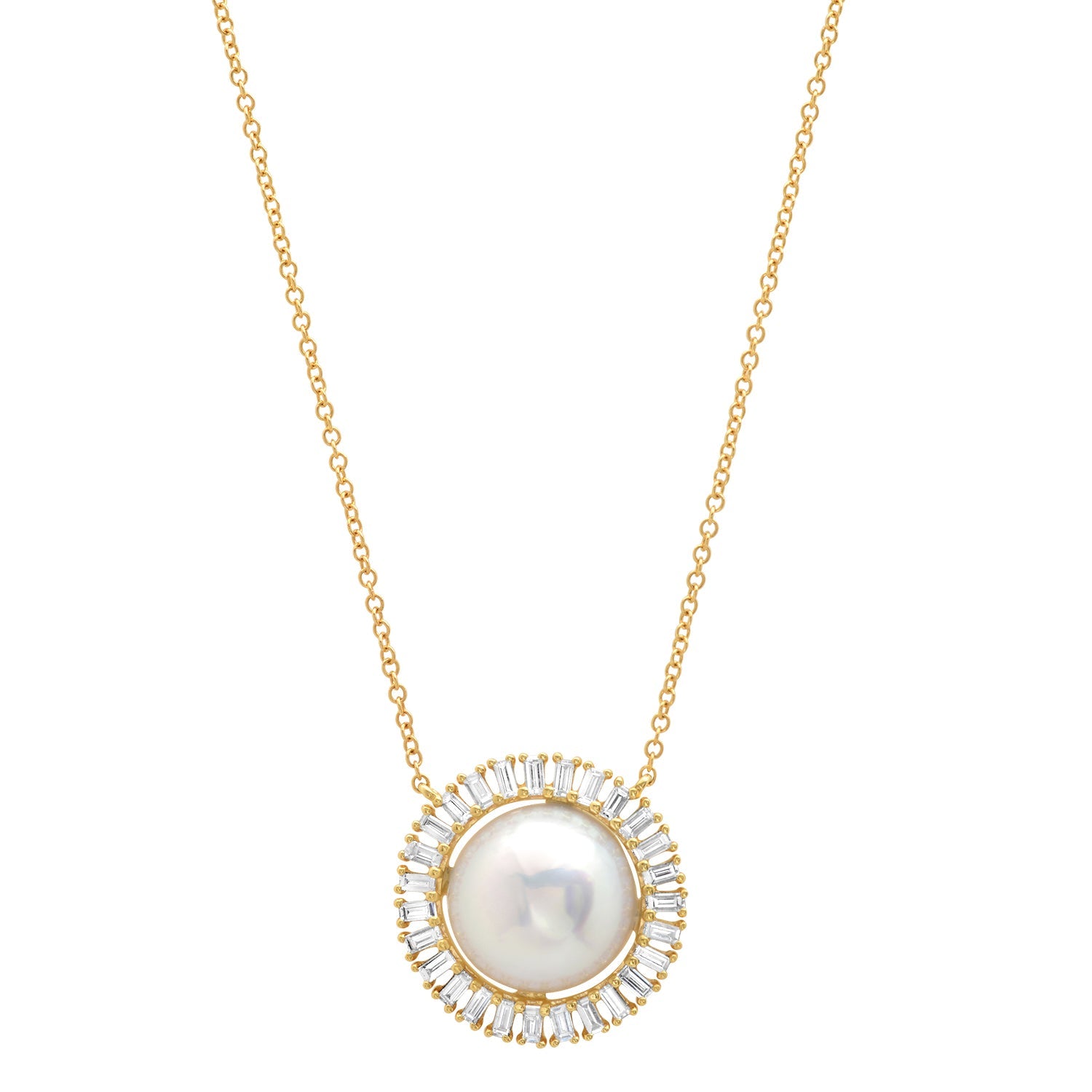 Australian Pearl Slice Diamond Baguette Halo Necklace