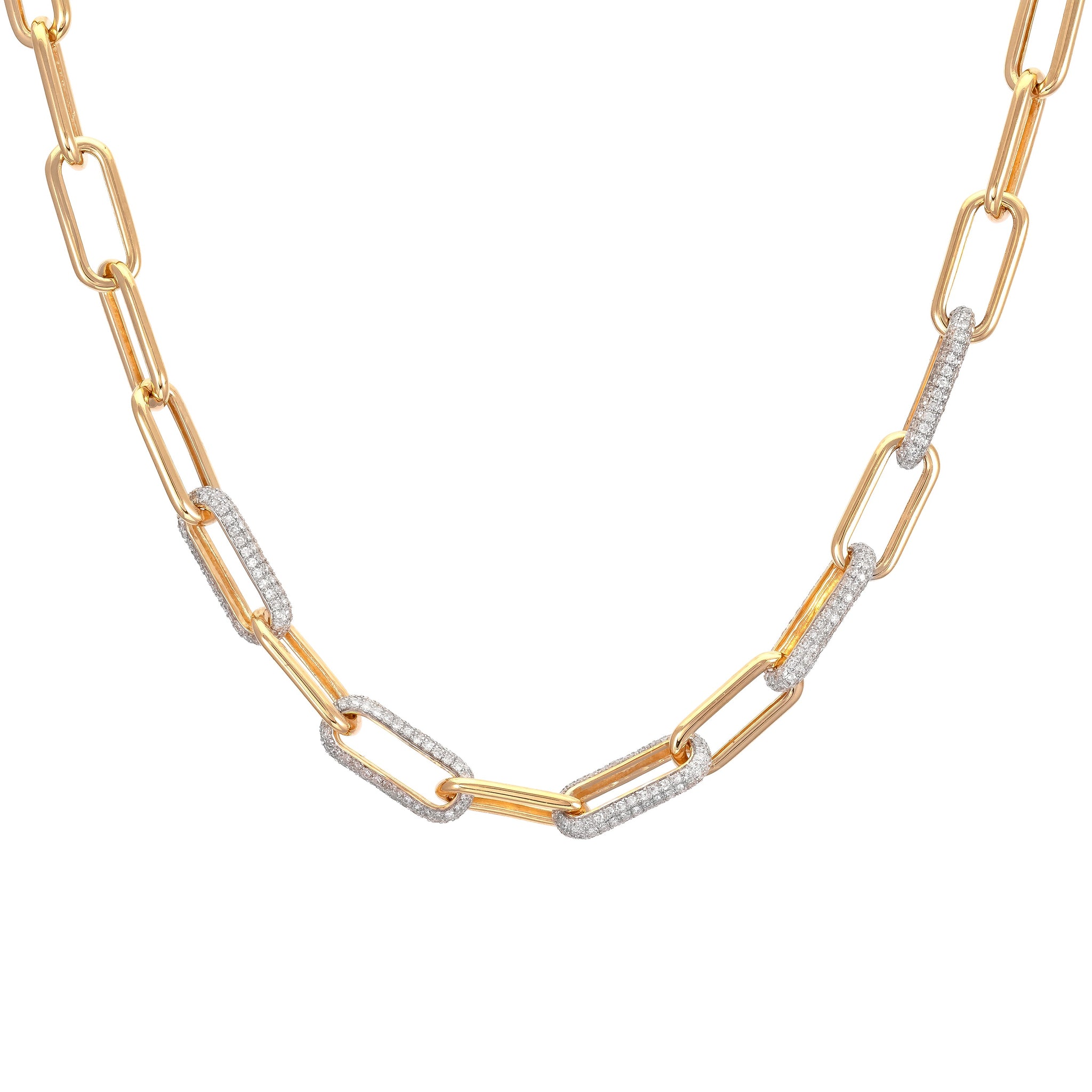 5 Pave Diamond Link Every Other Paperclip Link Chain