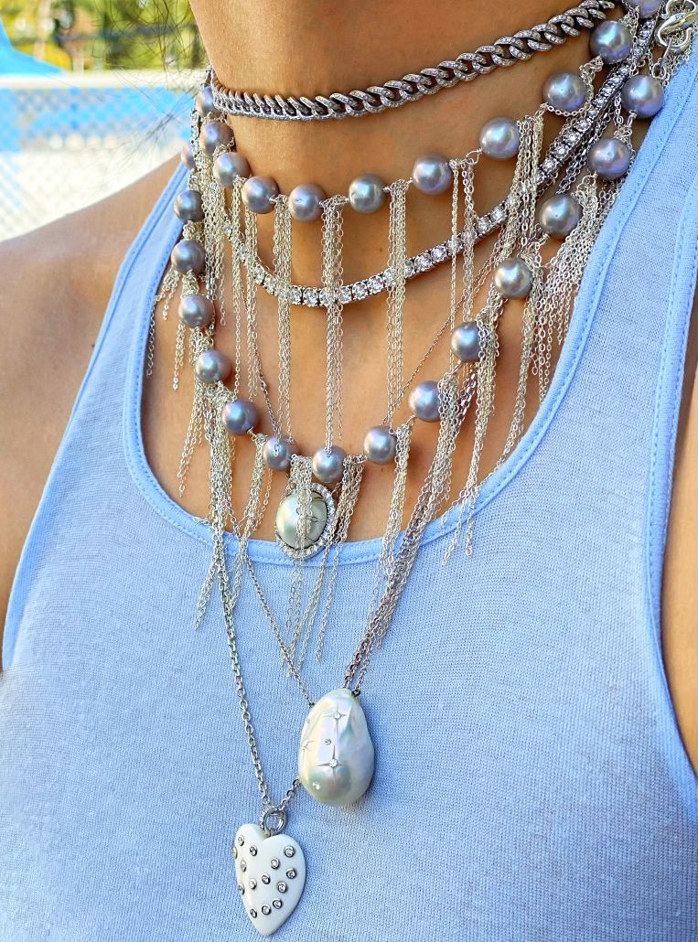 Multi Diamond Bezel Bone Heart Chain Necklace