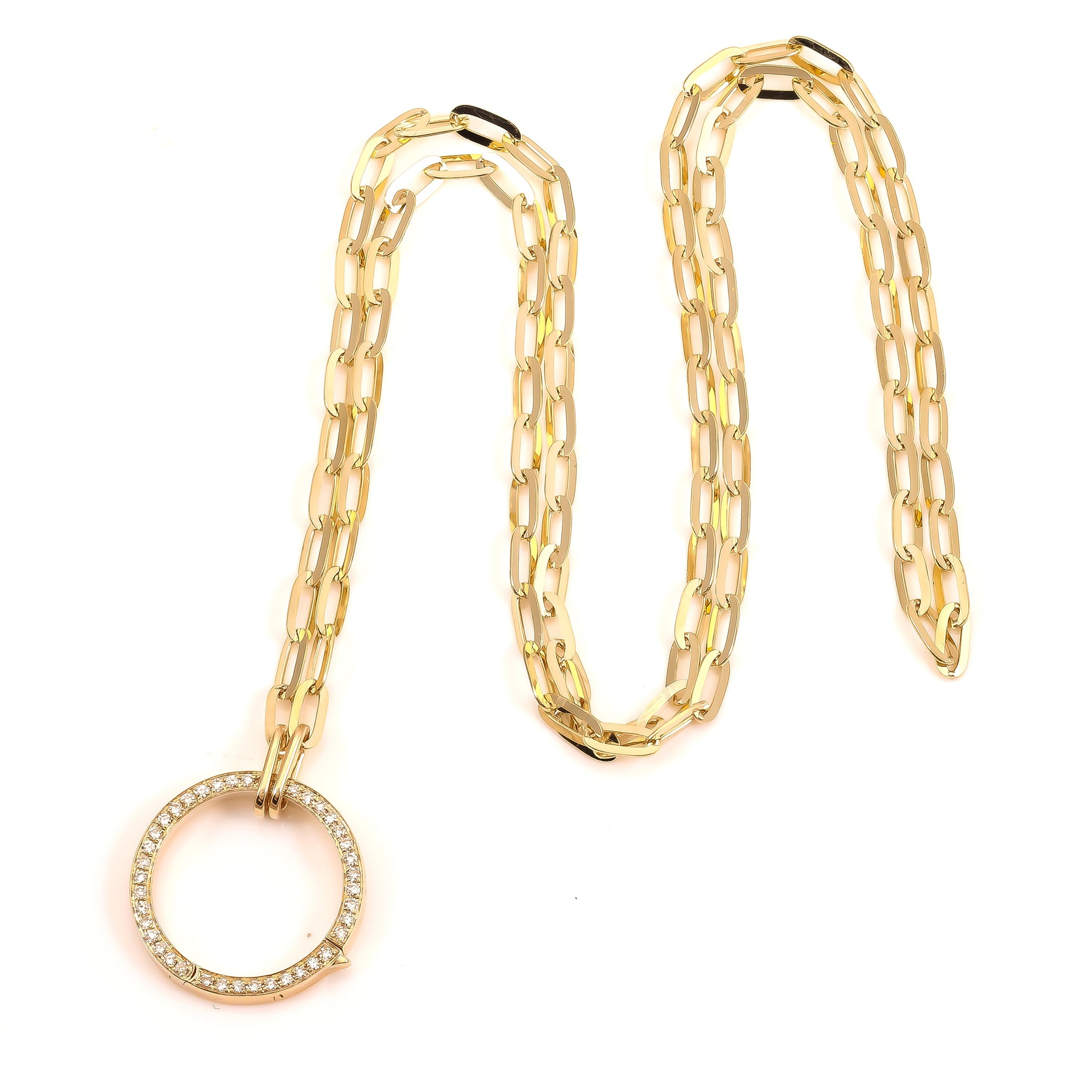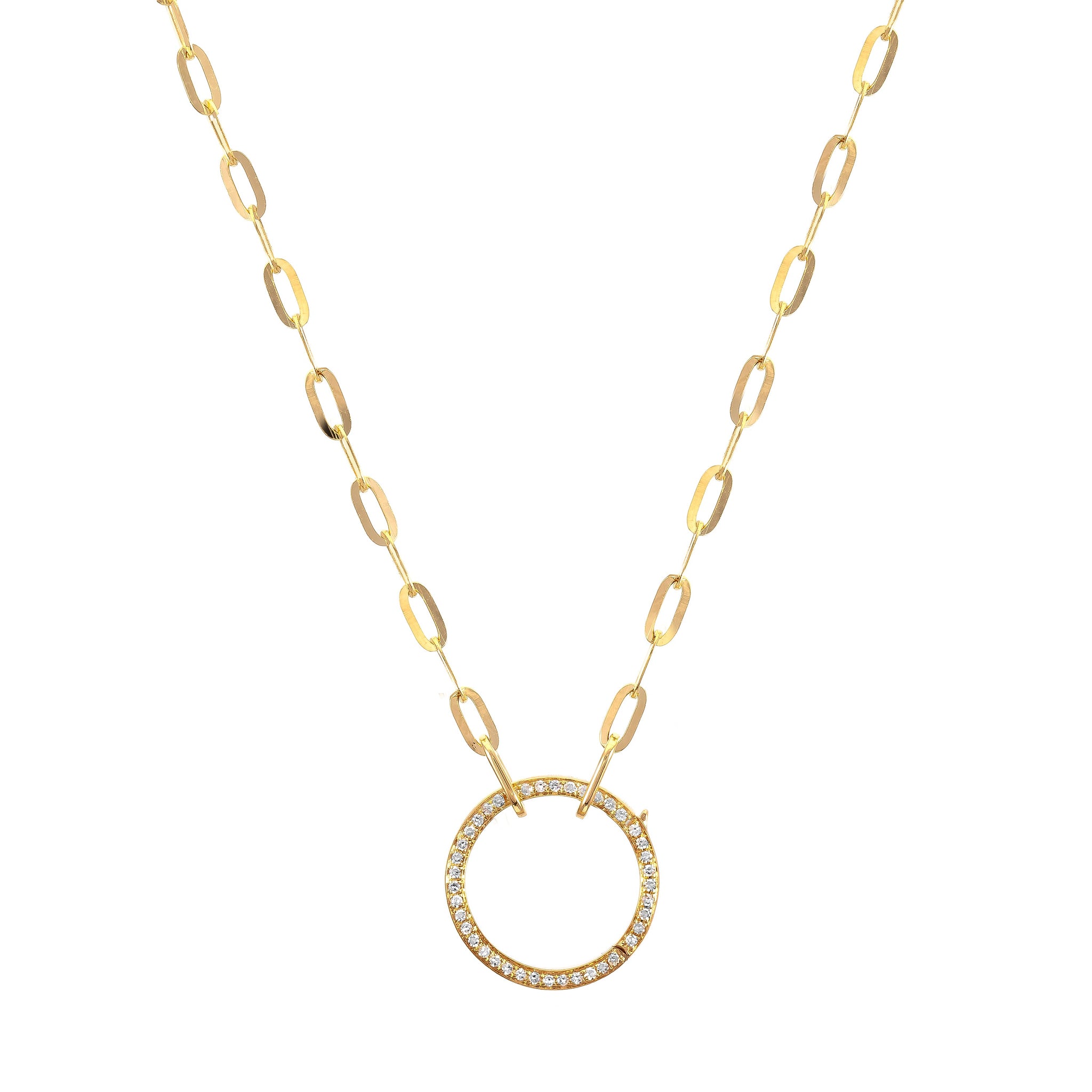 Large Round Pave Diamond Enhancer Thin Paperclip Link Chain Necklace
