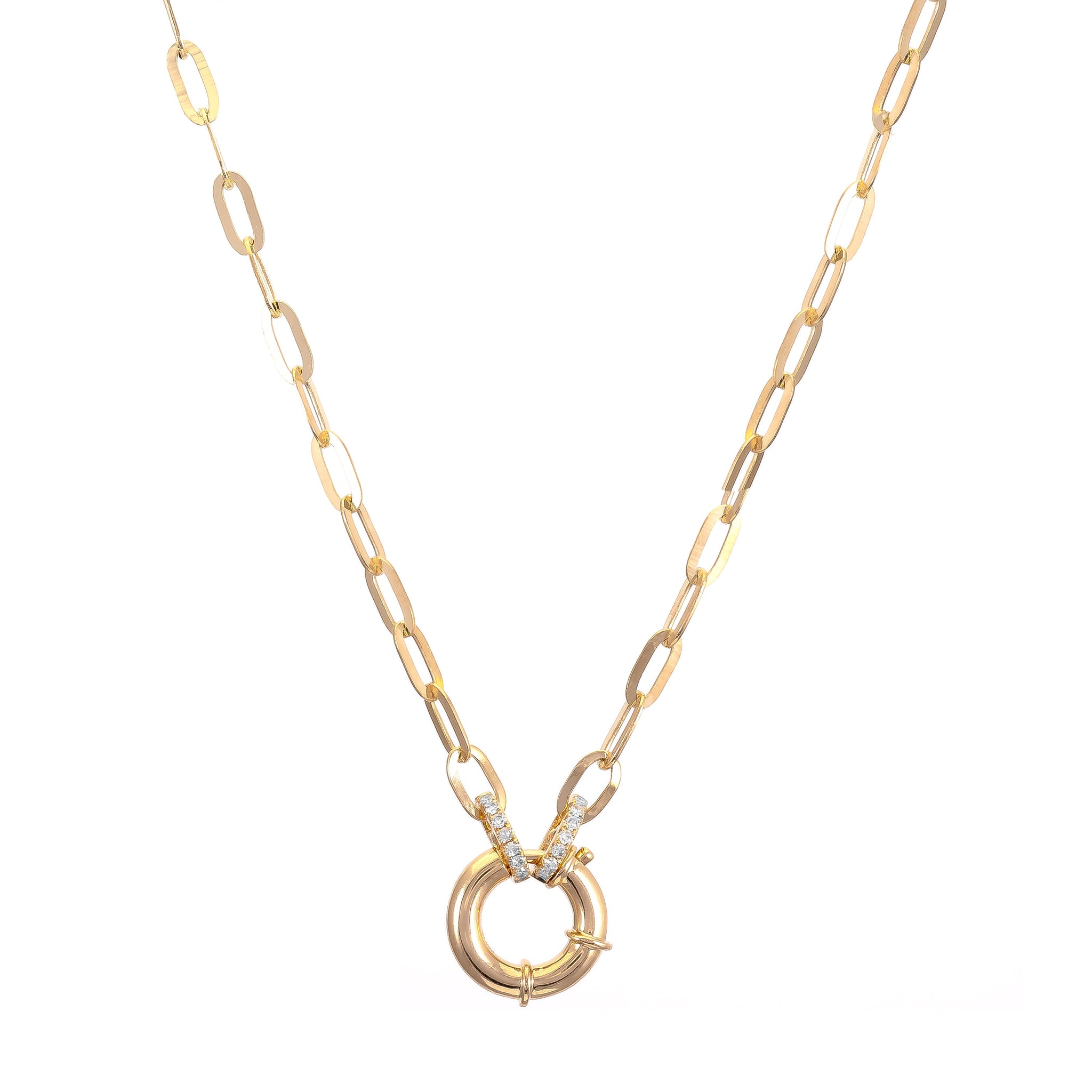 Pave Diamond Bail Round Spring Clasp Enhancer Thin Paperclip Link Chain