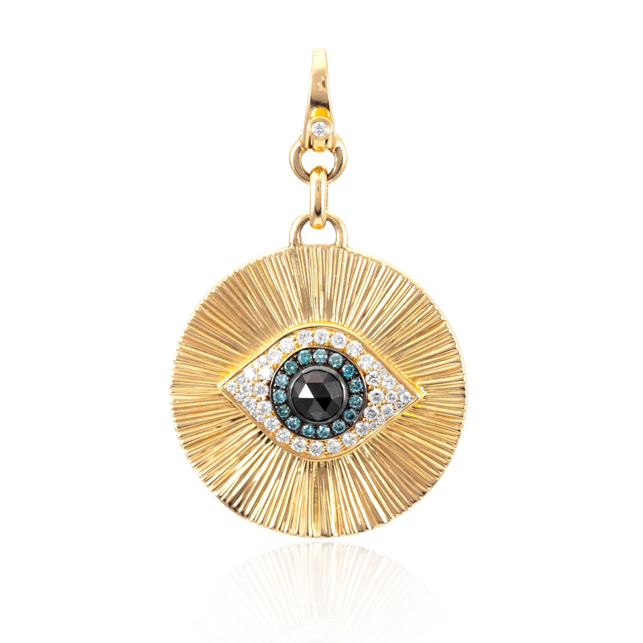 White + Blue Diamond Black Zircon Eye Radiating Disk Charm