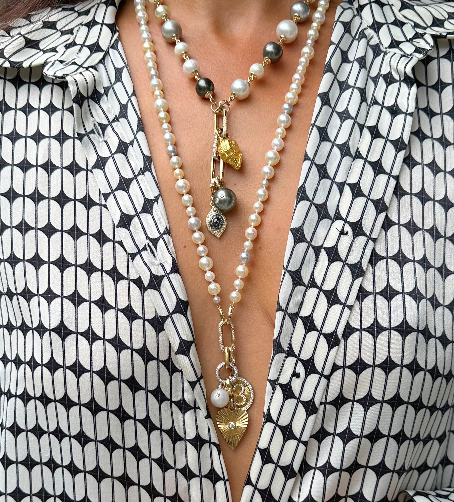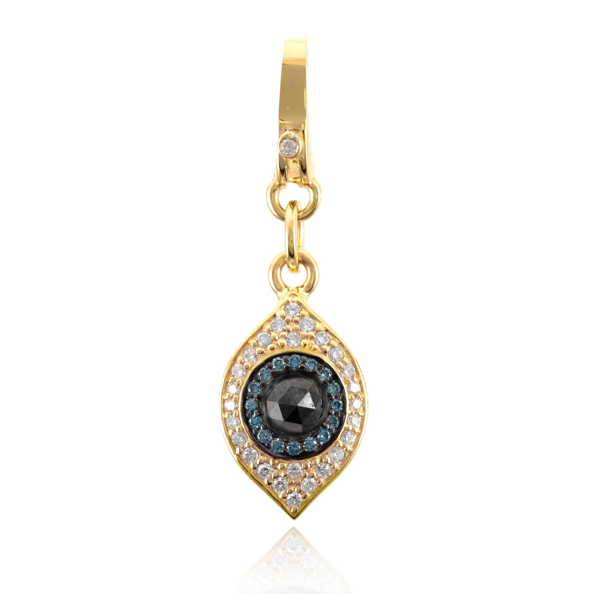 White + Black Diamond + Blue Sapphire Vertical Evil Eye Charm