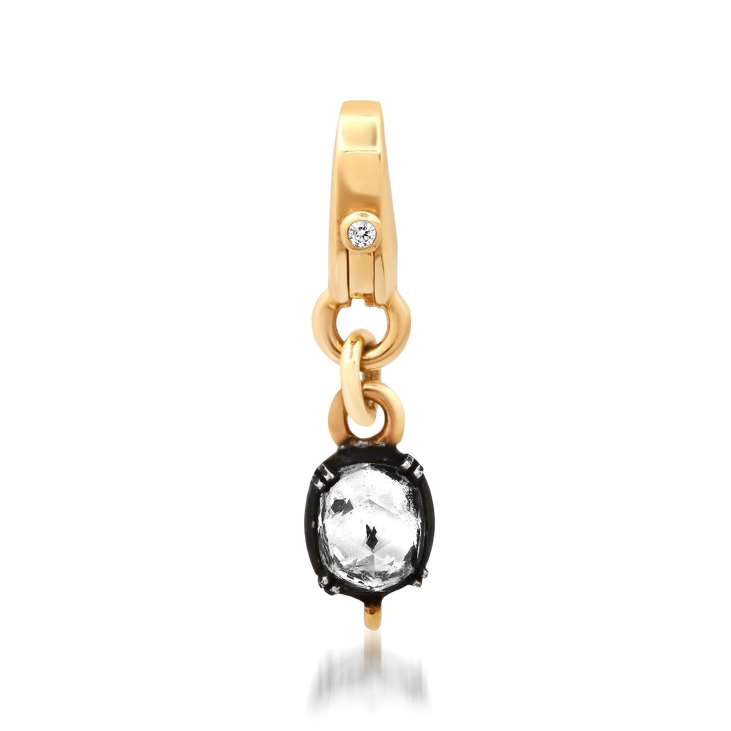 Tahitian Pearl Mini Rose Cut Oval White Topaz Antique Setting Pendant