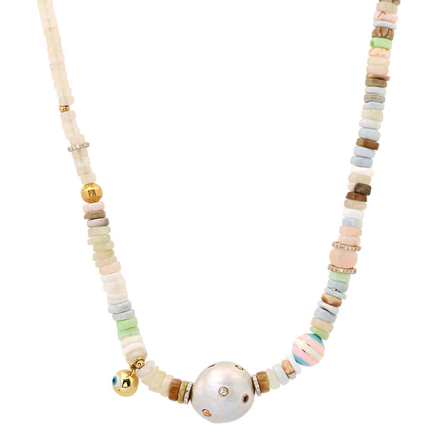 Rainbow Sapphire Bezel Encrusted Pearl Opal Rondall Necklace