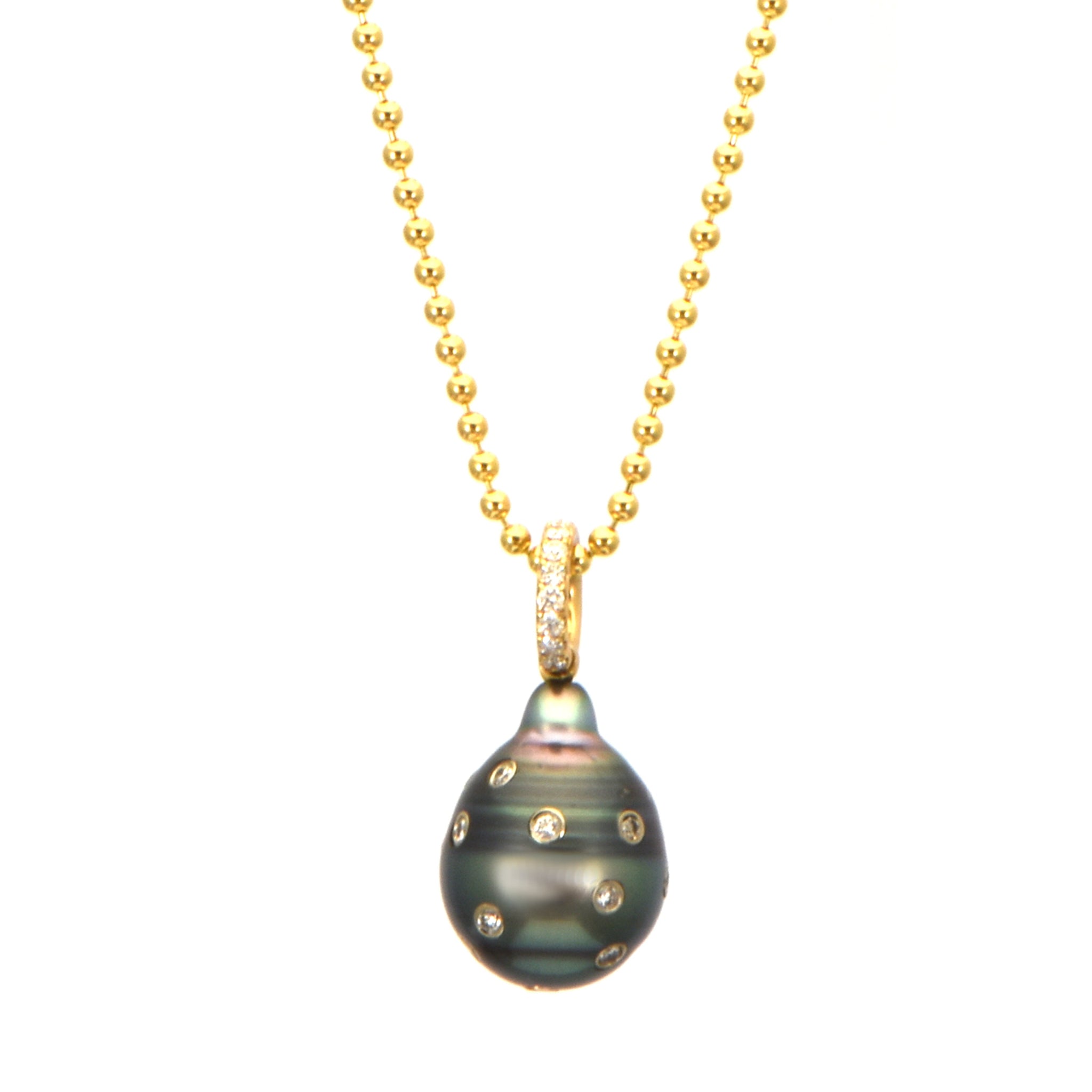 Diamond Bezel Encrusted Tahitian Pearl Pendant
