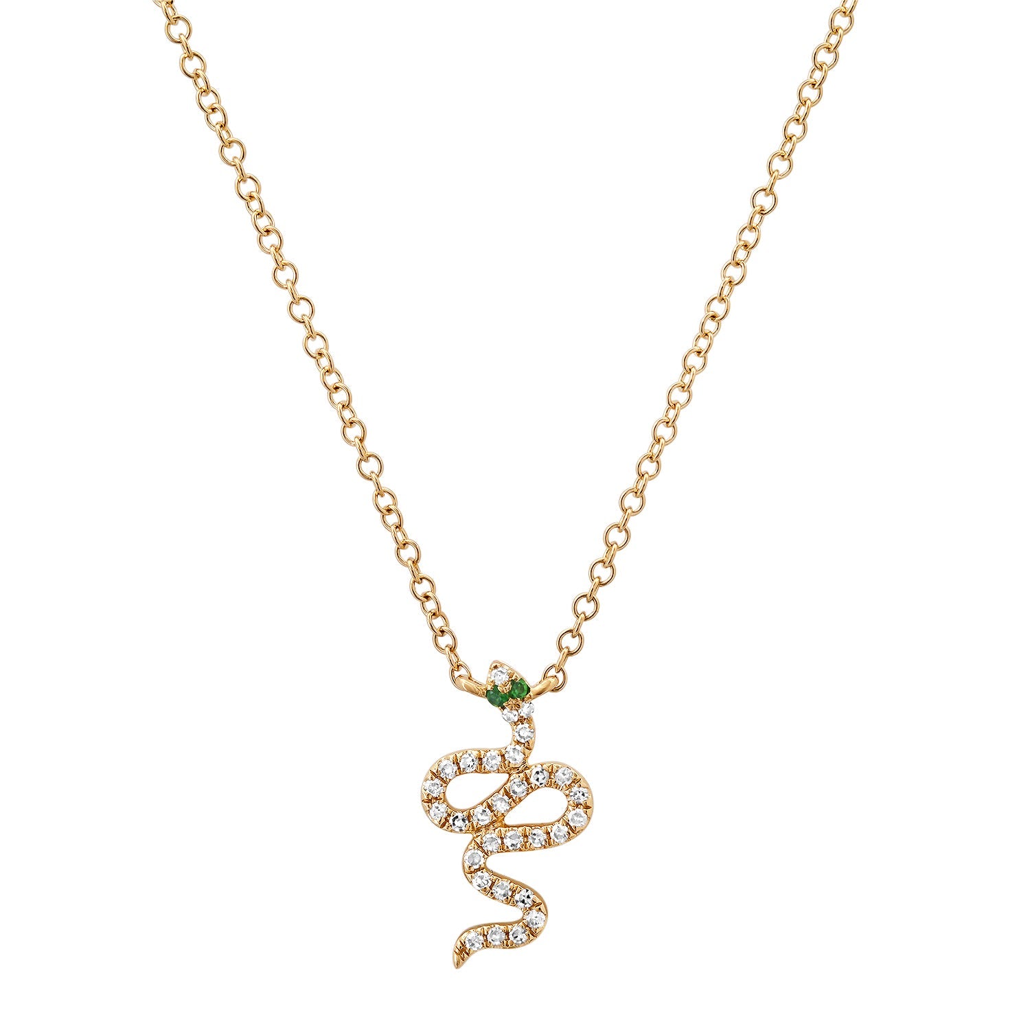 Tsavorite Eye Pave Diamond Vertical Snake Necklace