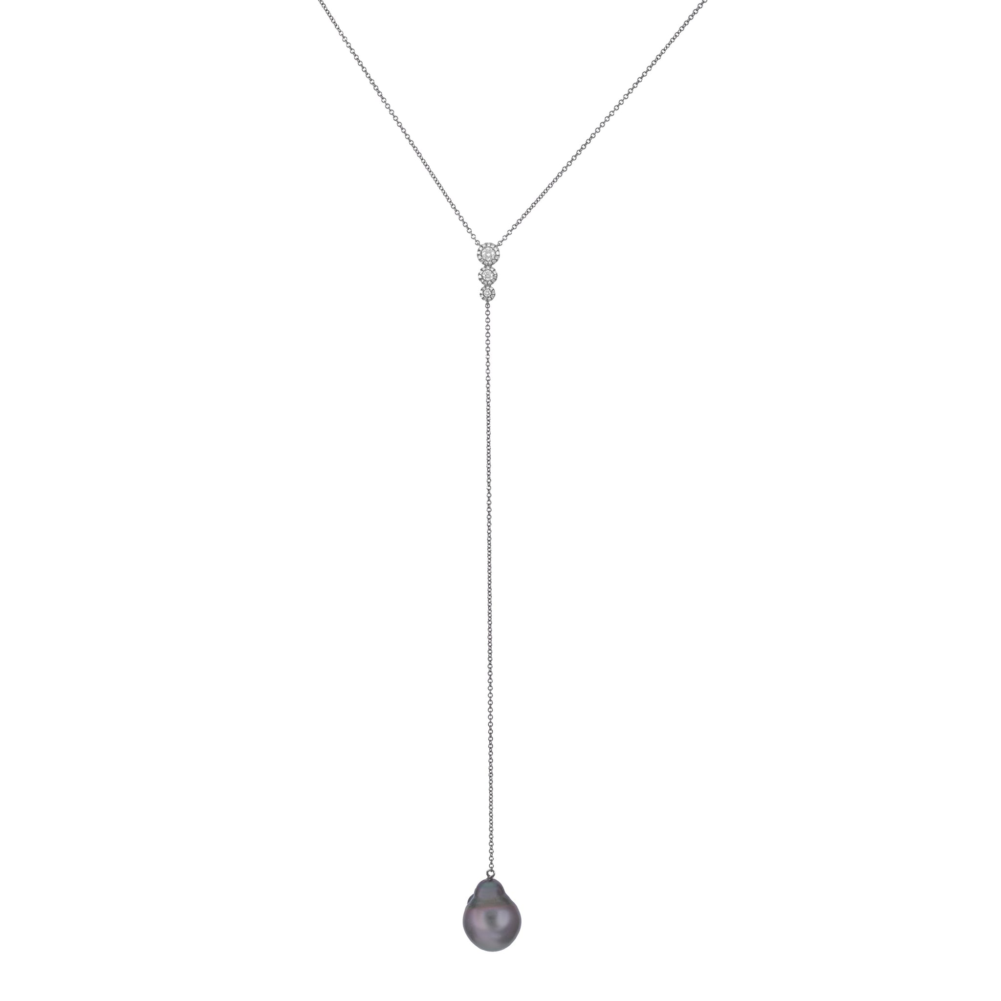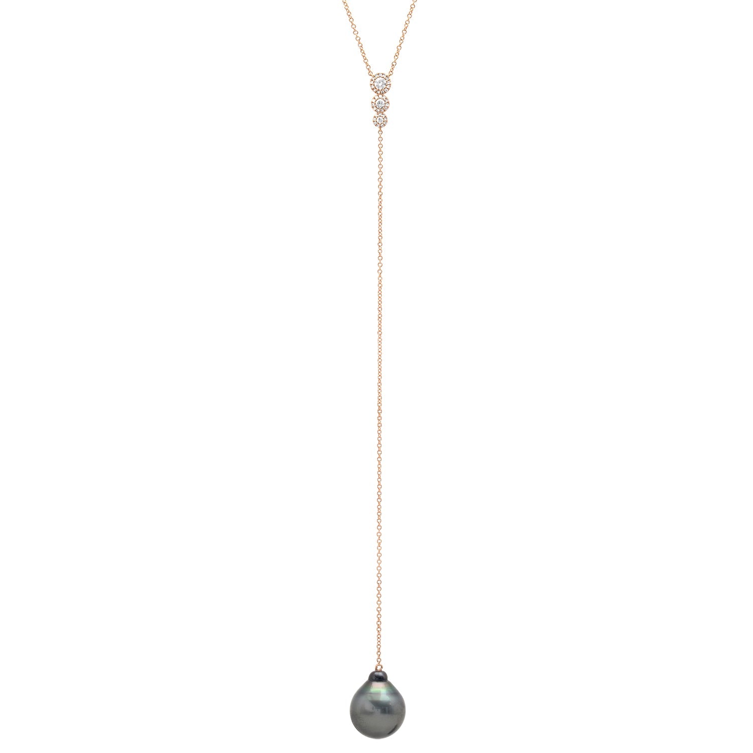 Tahitian Pearl Triple Diamond Halo Y Necklace