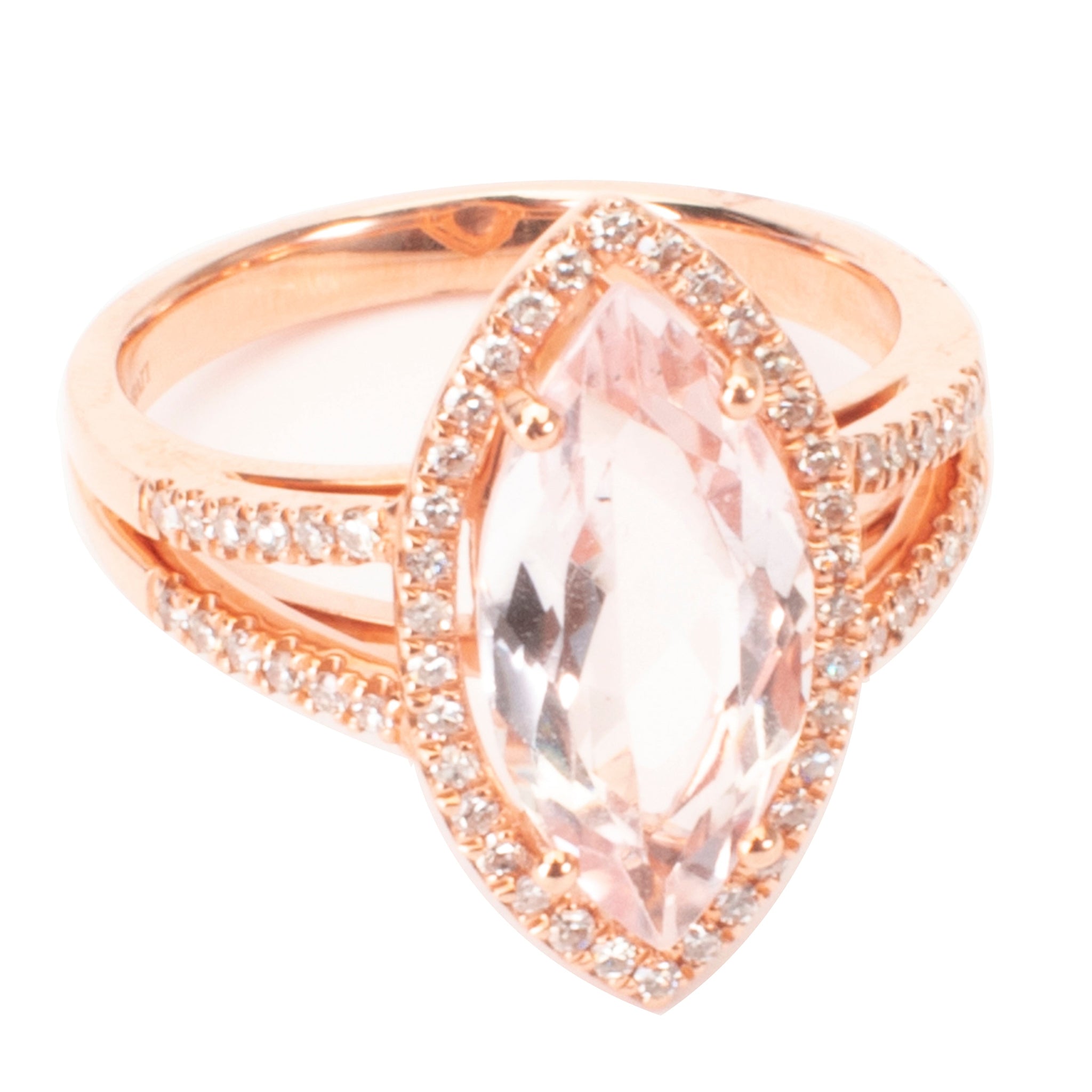 Morganite Marquis Diamond Outline Split Shank Ring