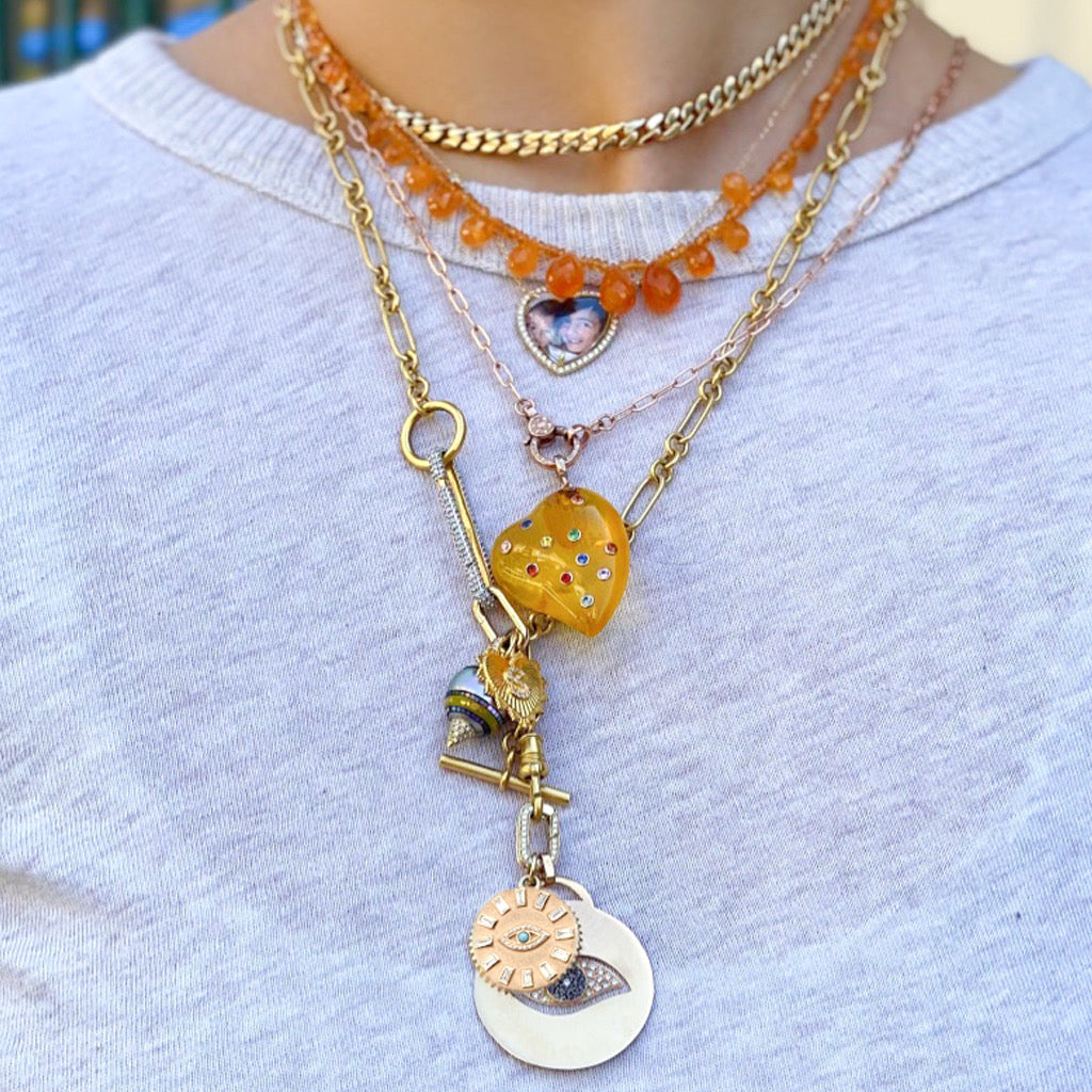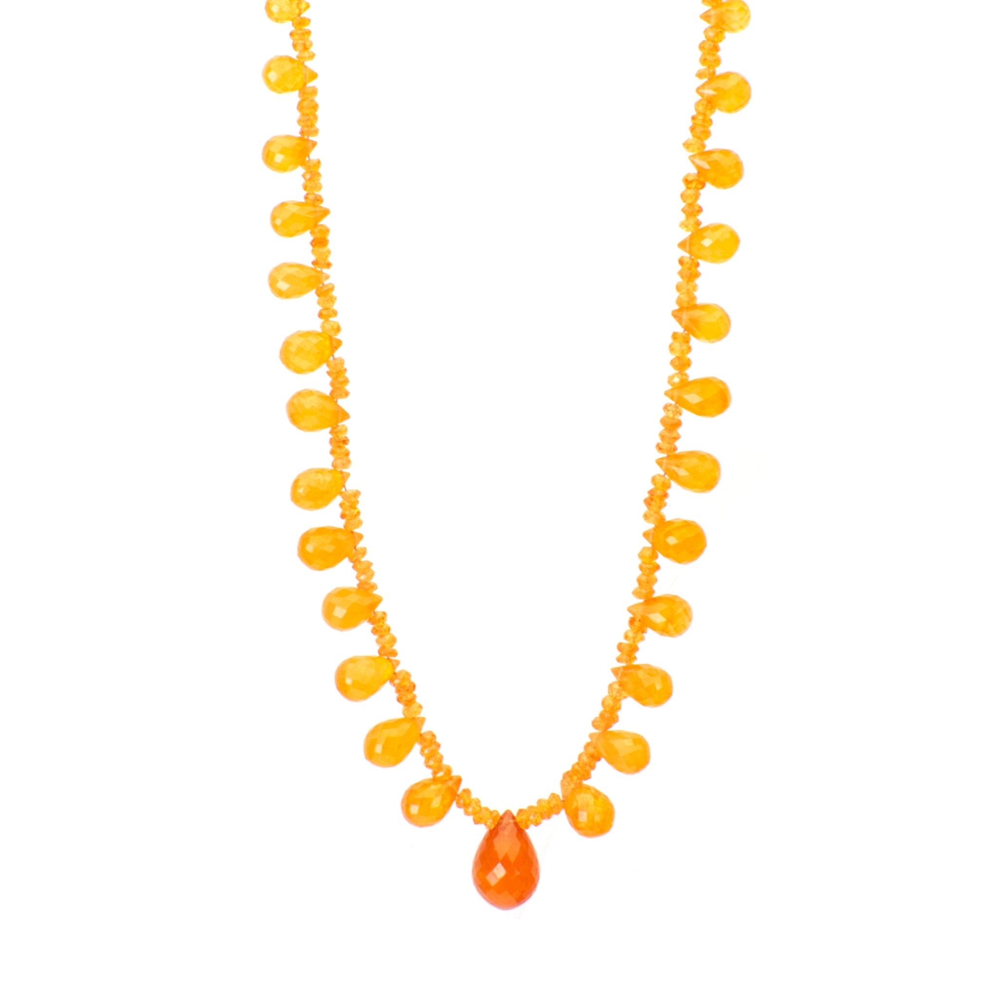 Orange Sapphire Tear Drop Briolettes Carnelian Bead Toggle Clasp Necklace