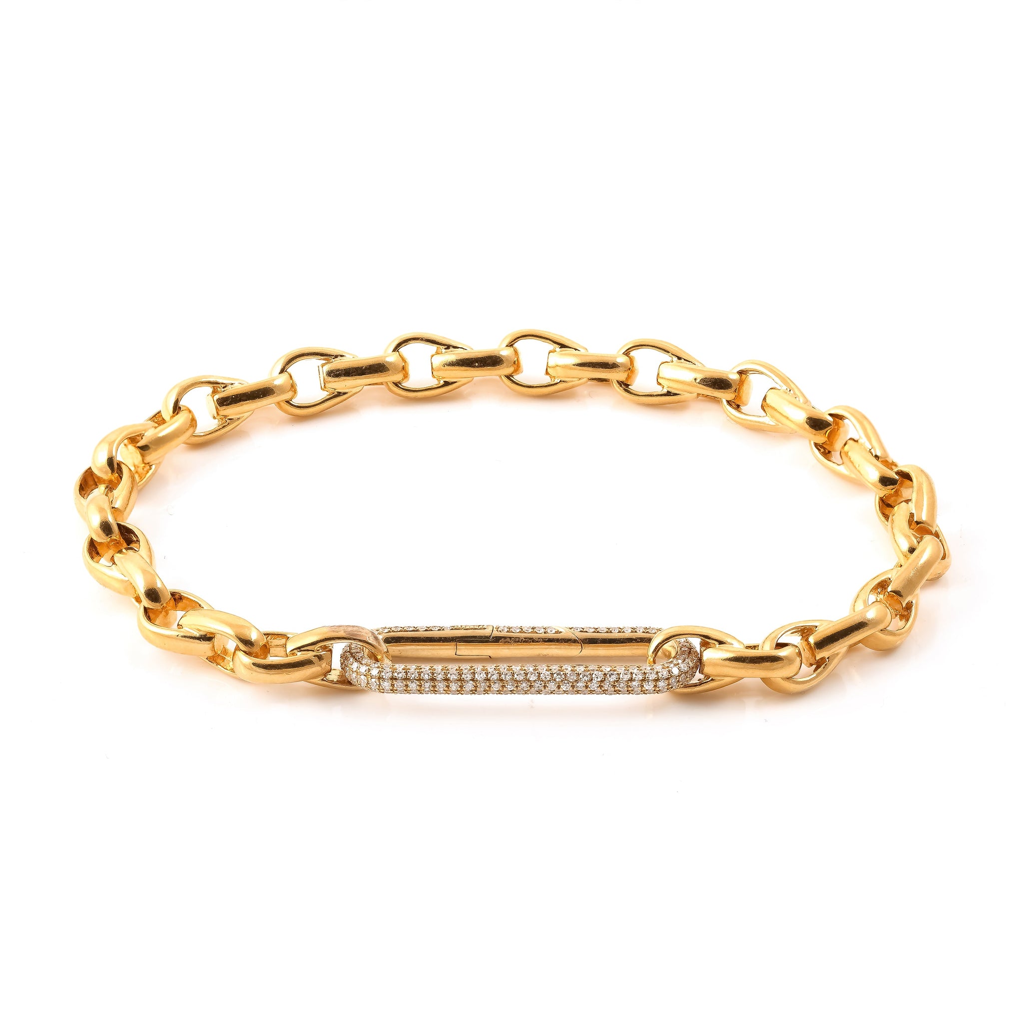 Tear Drop Shaped Link Chain Pave Diamond Long Oval Enhancer Bracelet