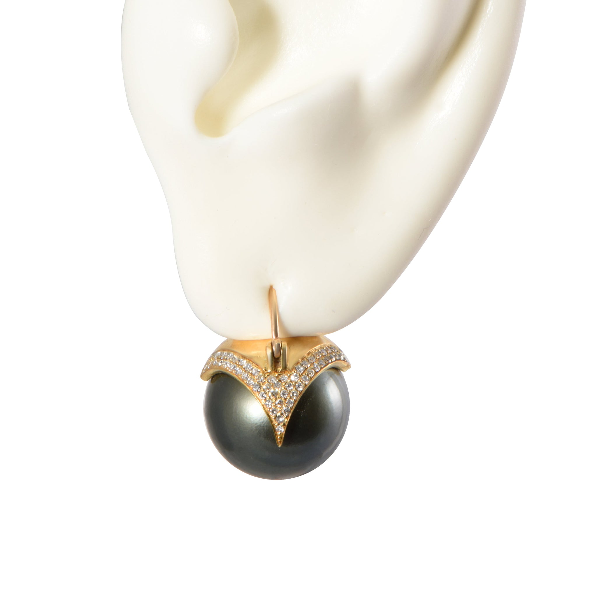 Floating Tahitian Pearls Pave Diamond Armor Hook Earrings
