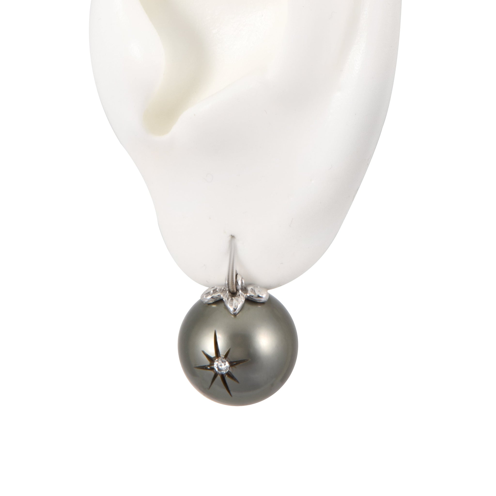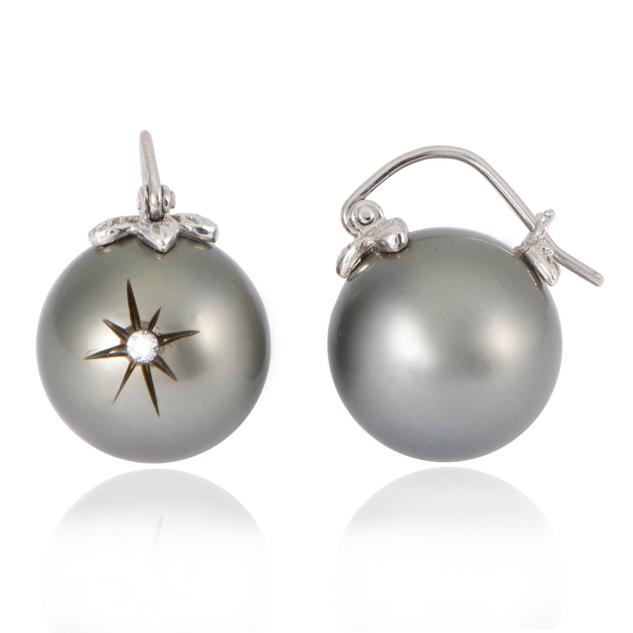 Floating Tahitian Pearls Carved Diamond Twinkle Earrings